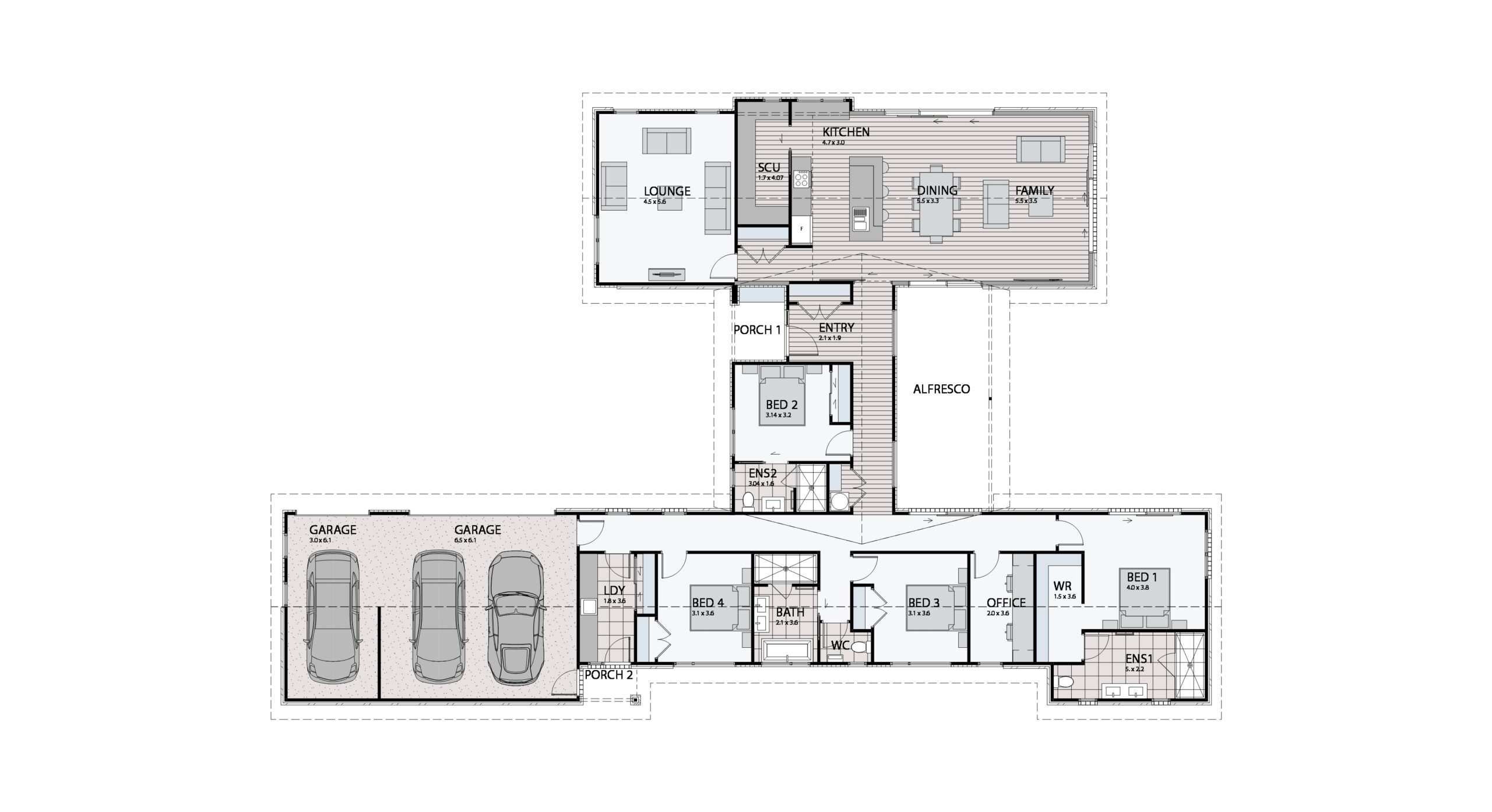 Triple internal access garage – ideal for extra vehicles, storage, or workshop space