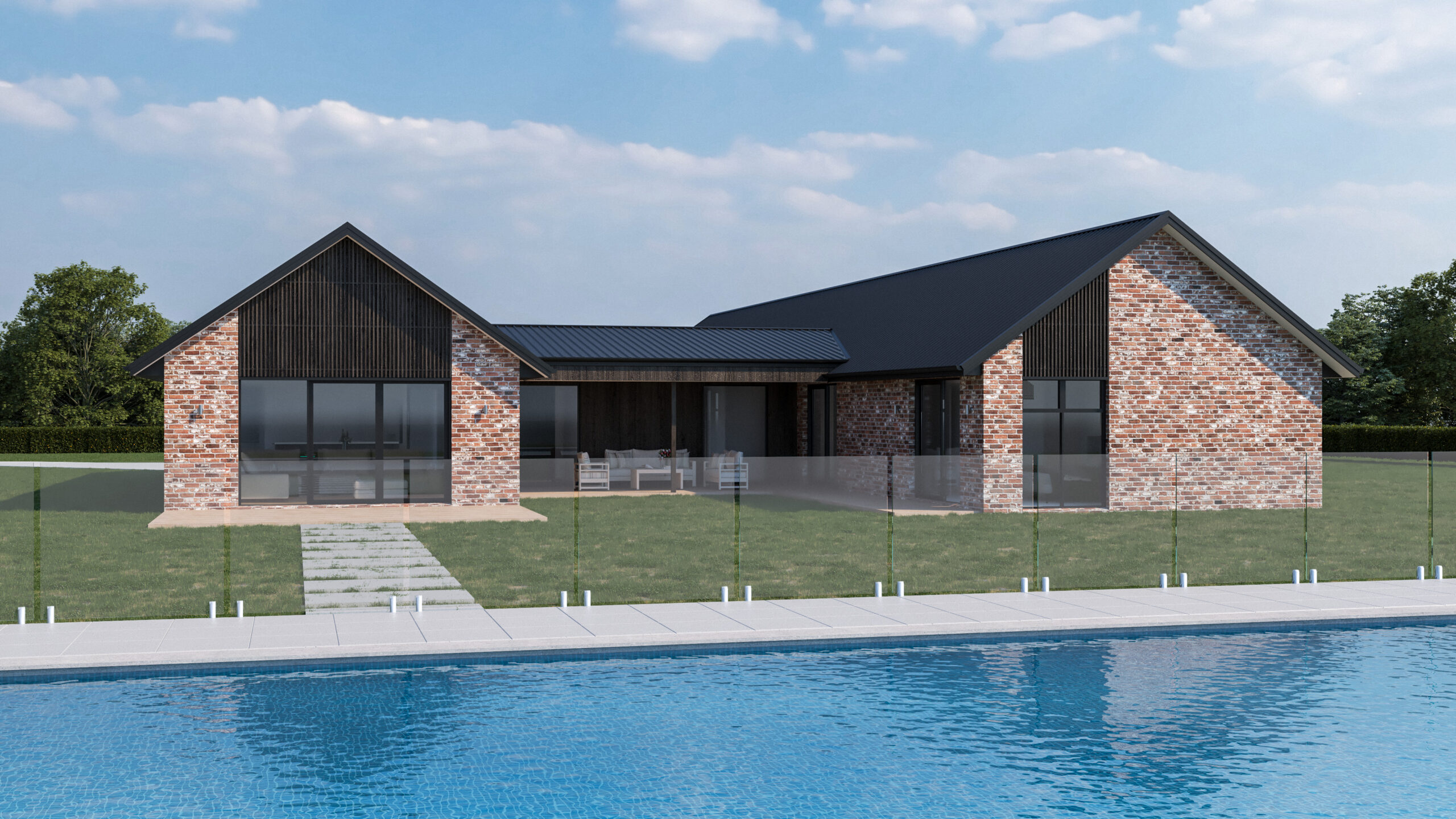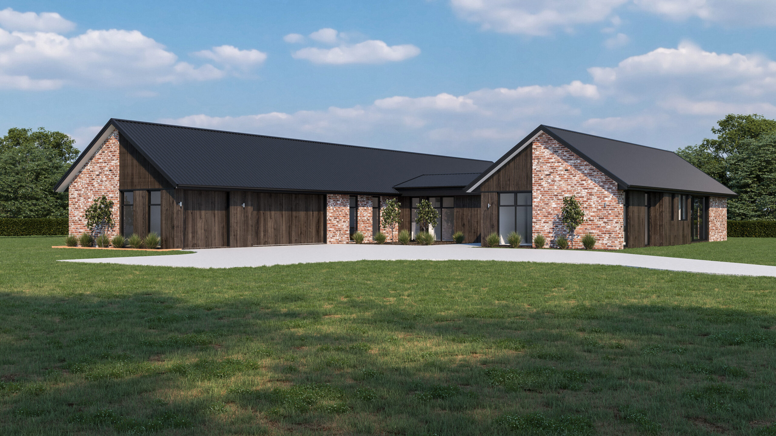 This home showcases a striking combination of brick and vertical cladding, delivering a modern rural aesthetic that compliments its lifestyle setting. Strong gable rooflines and natural textures create a timeless yet contemporary feel.