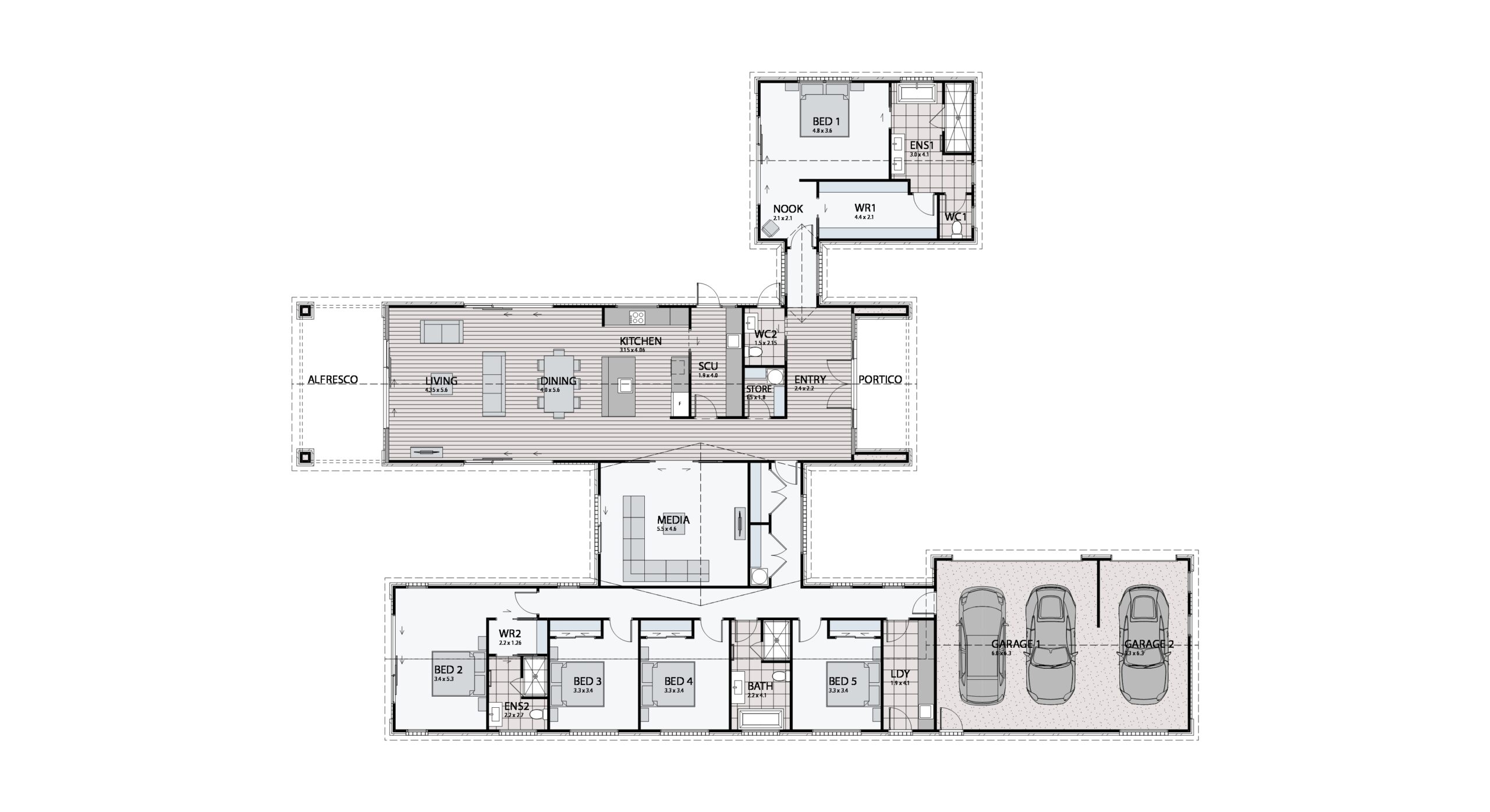 • Standard 2.55m stud height throughout